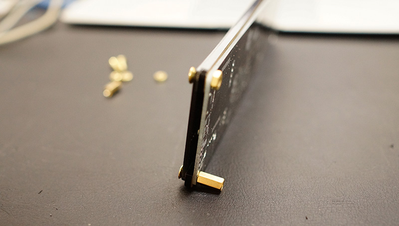 首先請將濾光層雙面的保護膠取下,然後將4個螺絲插入四個角落圓孔,並鎖上螺帽。